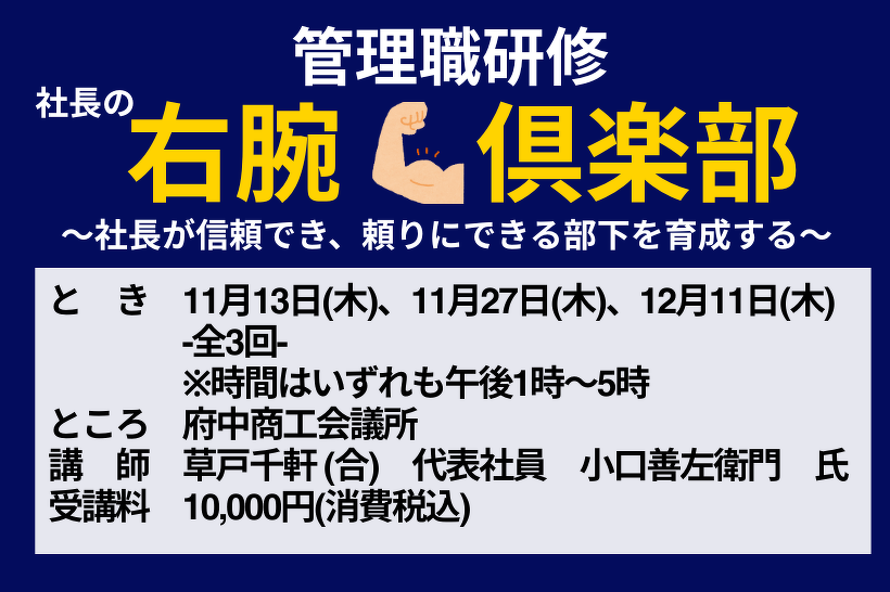 【管理職研修「社長の右腕倶楽部」*ご案内* ~社長が信頼でき、頼りにできる部下を育成する~ 】