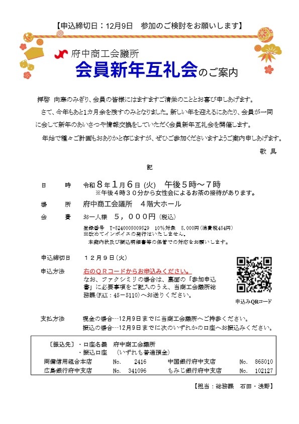 令和8年会員新年互礼会のご案内 参加者募集中!